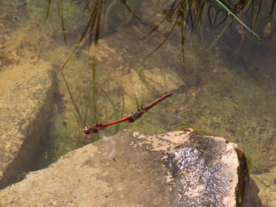 Crescono di numero altri frequentatori: le libellule; sia gli esili zigotteri, come Ischnura elegans, Coenagrion puella e Simpecma fusca, che i più robusti anisotteri, come le rosse Crocothemys erythraea e Sympetrum fonscolombii, l’azzurra Orthetrum cancellatum e la violetta Trithemis annulata – in realtà sono gli addomi dei maschi a tingersi di questi colori, quelli della maggior parte delle femmine sono giallastri.